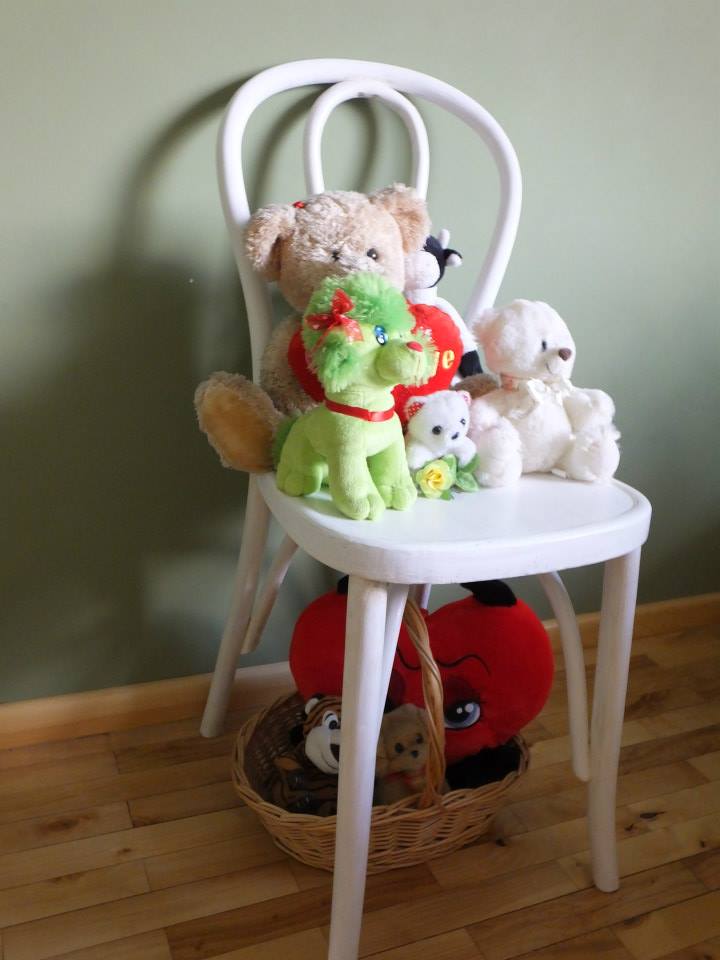 Krzesło zostało pomalowane farbą kredową rodzaj Casa Blanca oraz zawoskowane bezbarwnym woskiem. Zastosowanie wszechstronne.